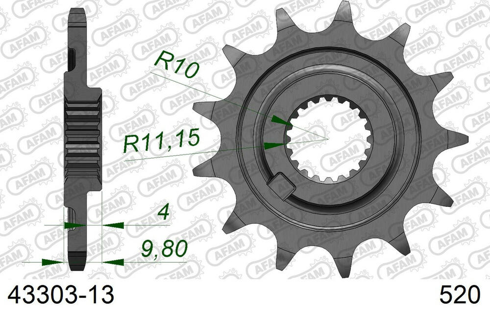 - vorne AFAM 520 Stahl Kettenrad / Ritzel 13 Zähne