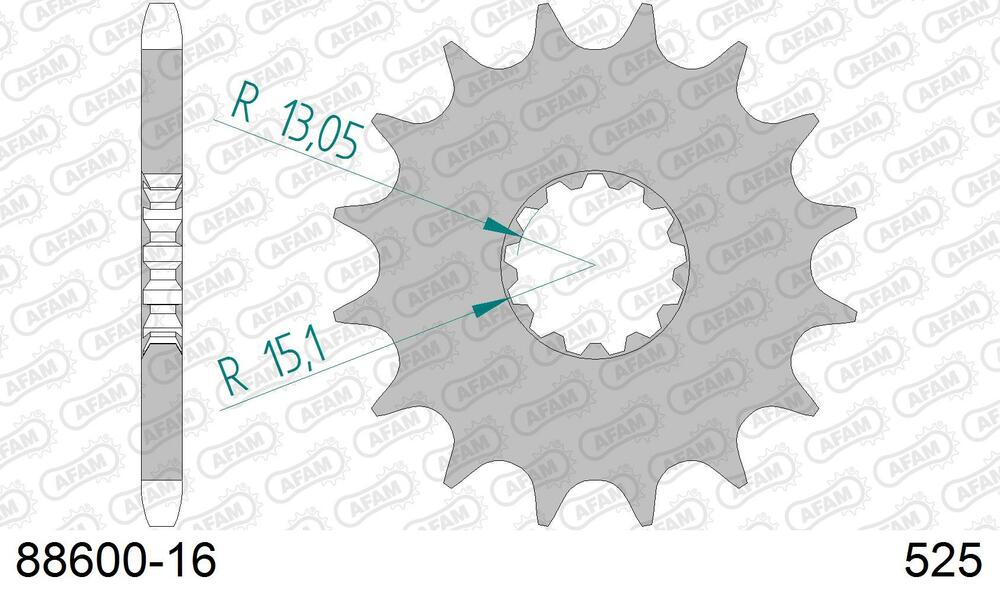 - vorne AFAM 525 Stahl Kettenrad / Ritzel 16 Zähne