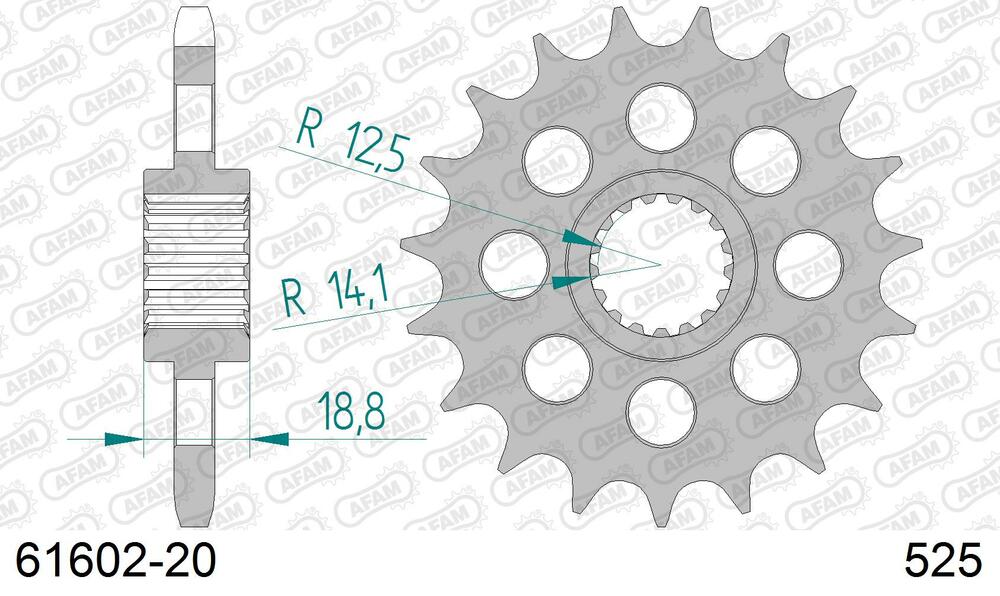 - vorne AFAM 525 Stahl Kettenrad / Ritzel 20 Zähne