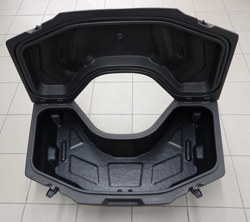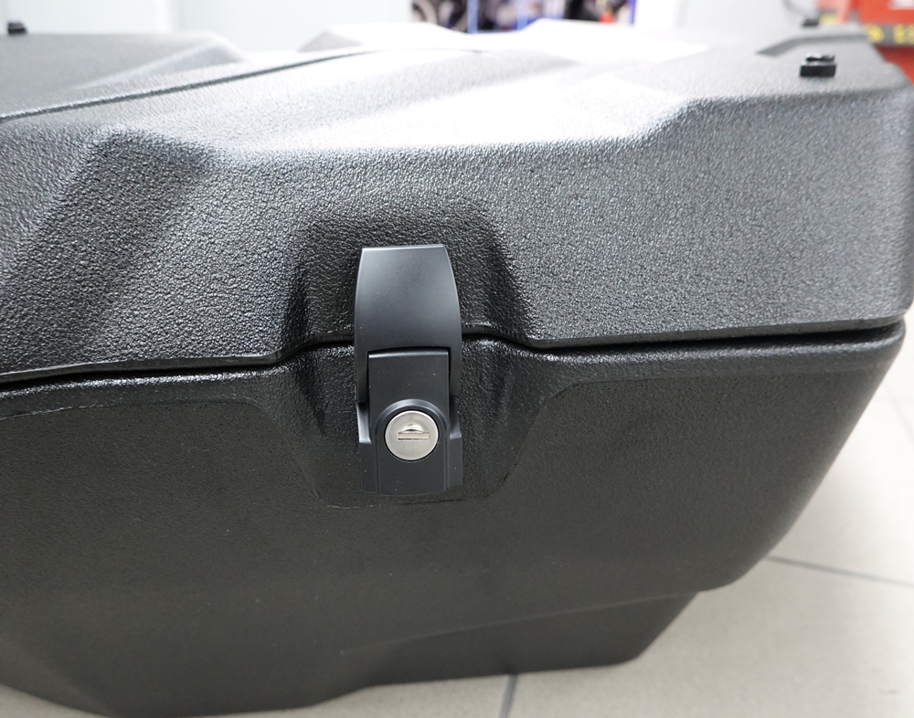 Der Original CFMoto Helmkoffer für hinten mit 100 Liter Volumen ist ein großer, stabiler Quad Koffer, passend für den hinteren Gepäckträger.