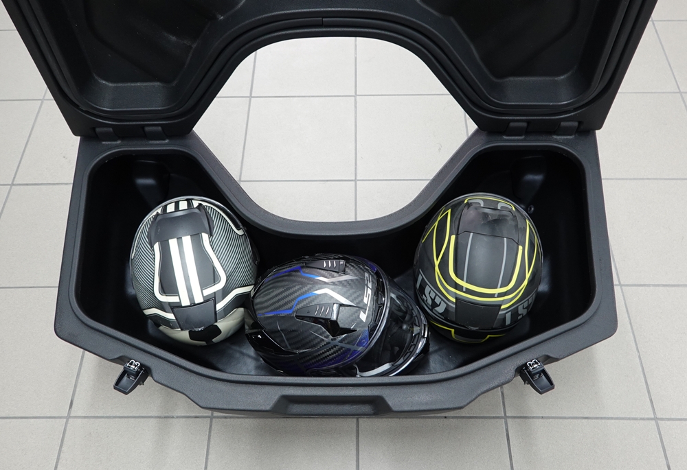 Das große Staufach bietet Platz bis zu 3 Intergral-Helme und weiteres Reisegepäck.