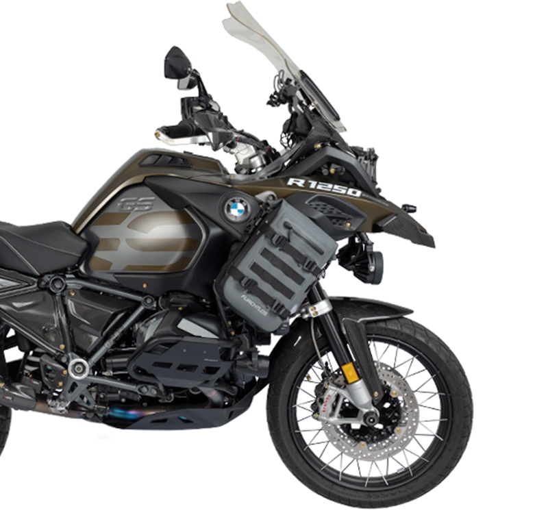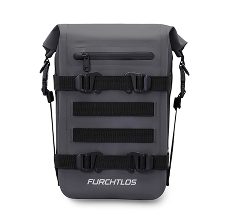 Die moderne Gepäcktasche wird mit den mitgelieferten Befestigungsgurte an einem Sturzbügel der linken oder rechten Fahrzeugseite befestigt.