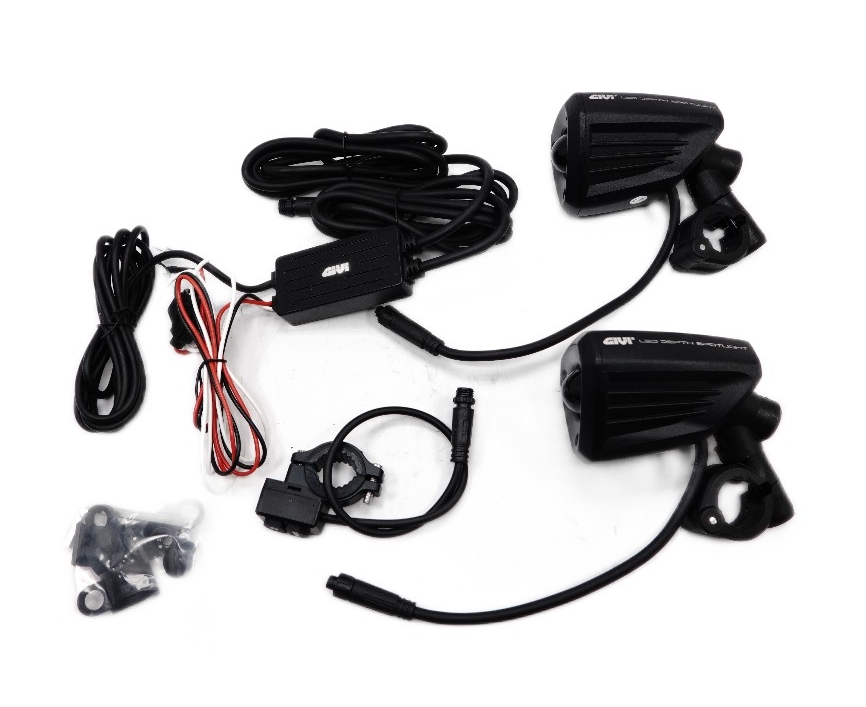 Original GIVI Zusatzscheinwerfer mit Leistungsstarker LED Technology im schwarzen Aluminium Gehäuse.