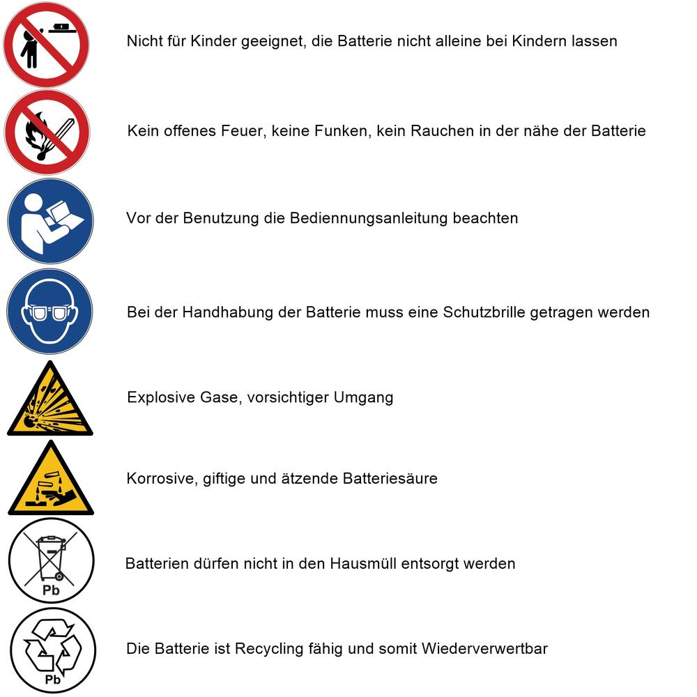 | Batterie Hinweise | ![]() ![]() ![]() ![]() ![]() ![]() ![]() |