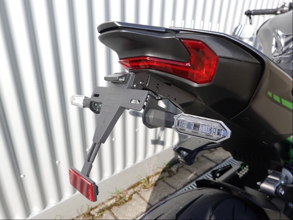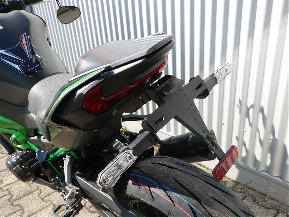 Hochwertiger Kennzeichenhalter für ihre Kawasaki Z 900 im Set mit LED Kennzeichenbeleuchtung und Rückstrahler.