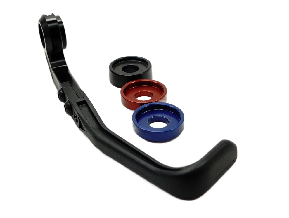 Schwarz eloxierter Bremshebelschützer welcher aus hochwertigem Aluminium und Kunststoff hergestellt ist.