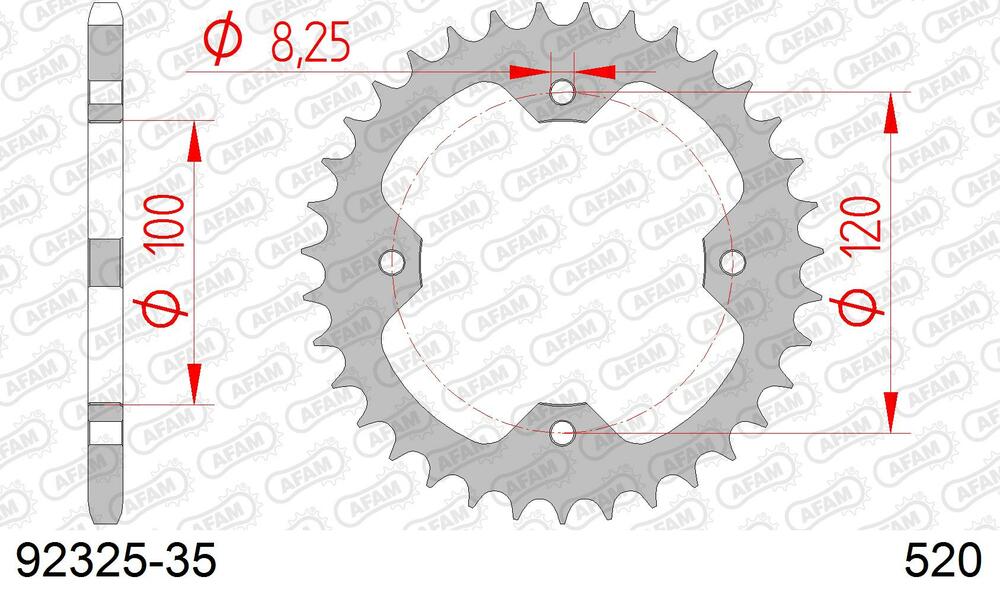 - hinten AFAM 520 Stahl Kettenrad 35 Zähne