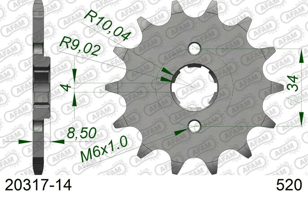 - vorne AFAM 520 Stahl Kettenrad / Ritzel 14 Zähne