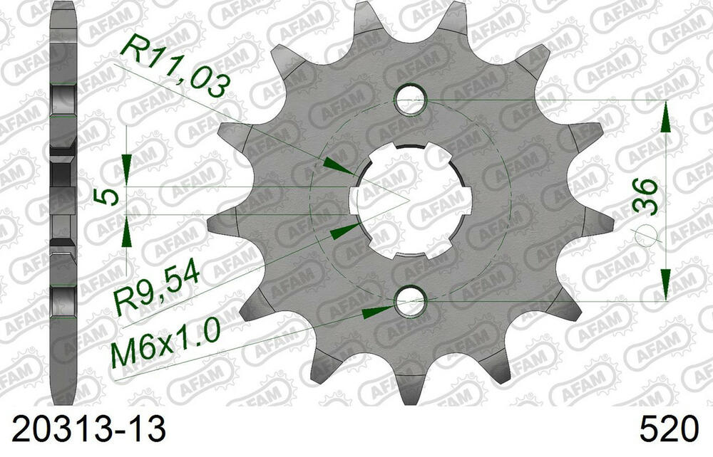 - vorne AFAM 520 Stahl Kettenrad / Ritzel 13 Zähne