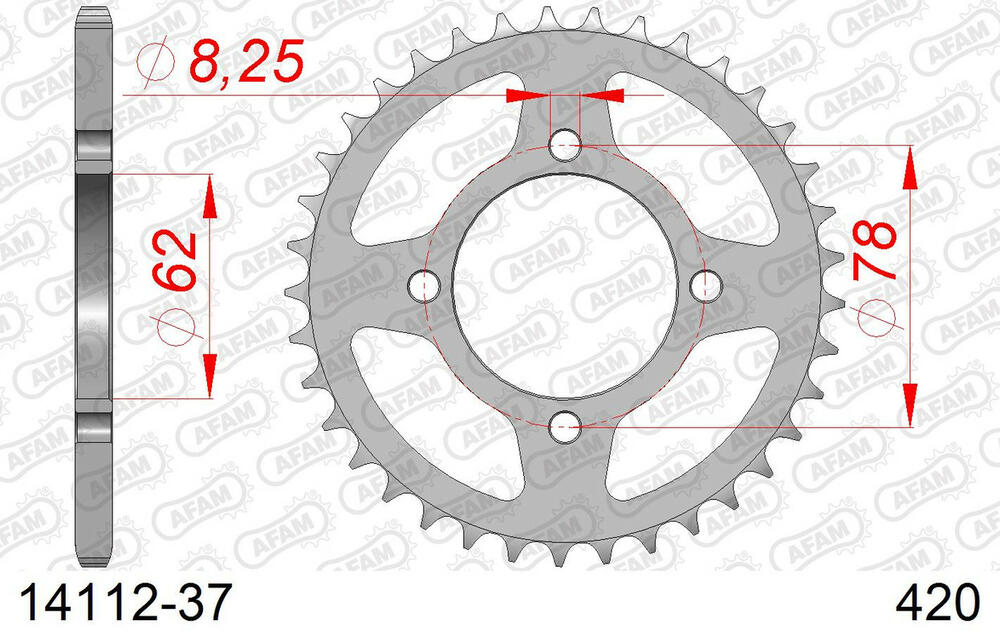 - hinten AFAM 420 Stahl Kettenrad 37 Zähne