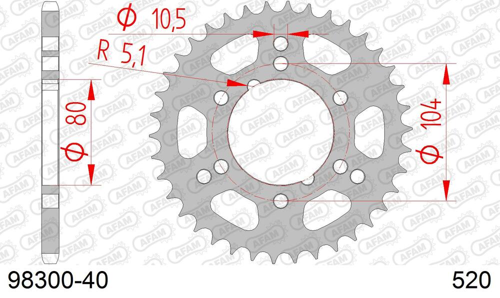 - hinten AFAM 520 Stahl Kettenrad 40 Zähne