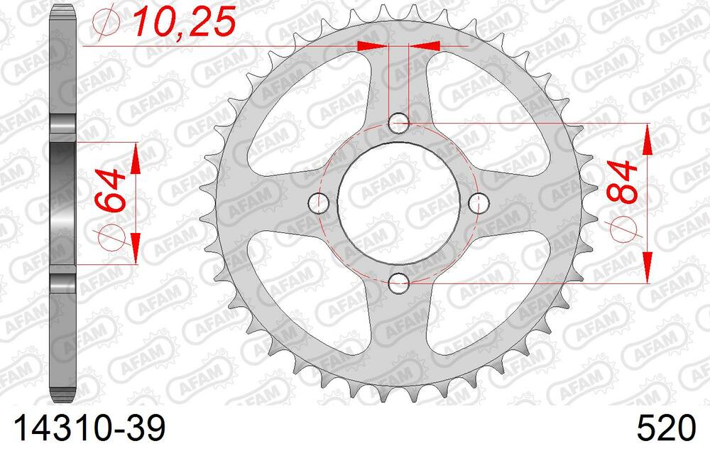 - hinten AFAM 520 Stahl Kettenrad 39 Zähne
