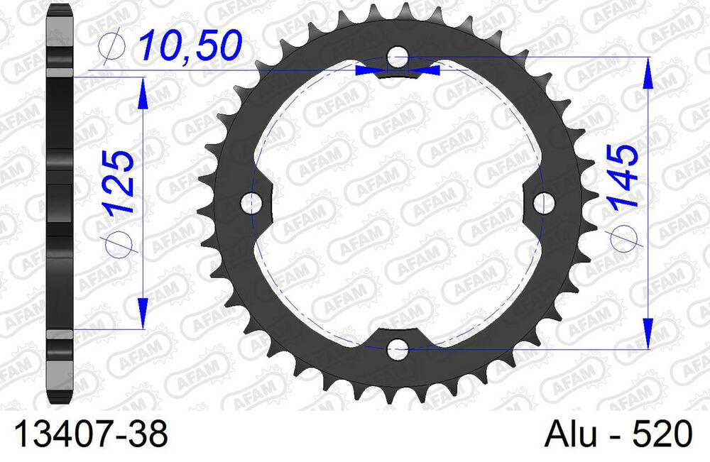 - hinten AFAM 520 Aluminium Kettenrad 38 Zähne