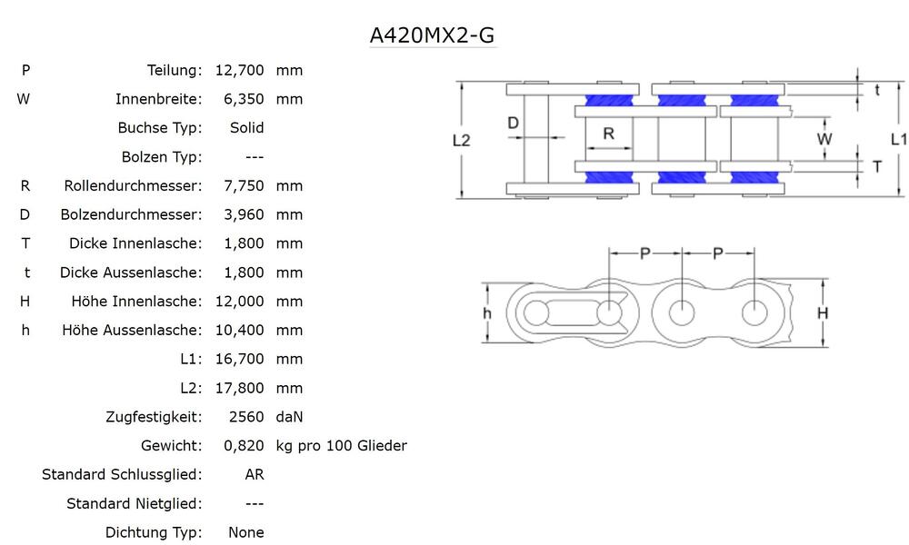 | Kettenteilung | 420 (1/2 x 1/4 Zoll) |