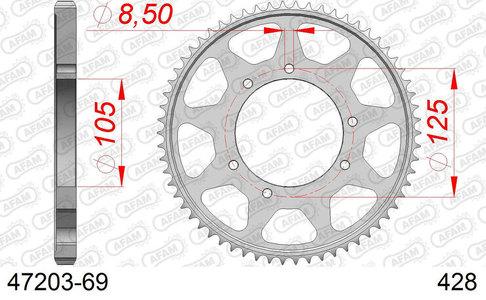 - hinten AFAM 428 Stahl Kettenrad 69 Zähne