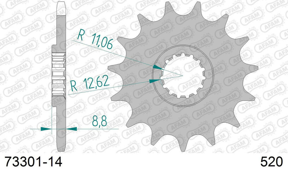 - vorne AFAM 520 Stahl Kettenrad / Ritzel 14 Zähne