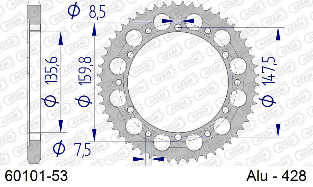 - hinten AFAM 428 Aluminium Kettenrad 53 Zähne