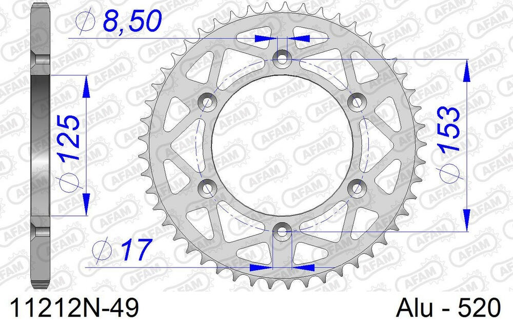 - hinten AFAM 520 Aluminium Kettenrad 49 Zähne