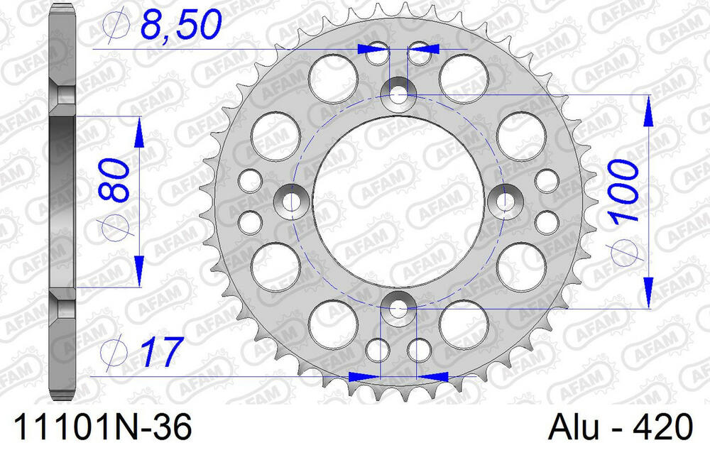 - hinten AFAM 420 Aluminium Kettenrad 36 Zähne