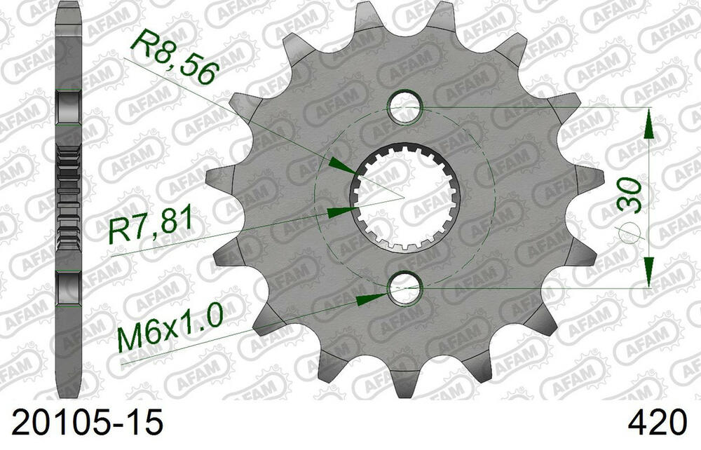 - vorne AFAM 420 Stahl Kettenrad / Ritzel 15 Zähne