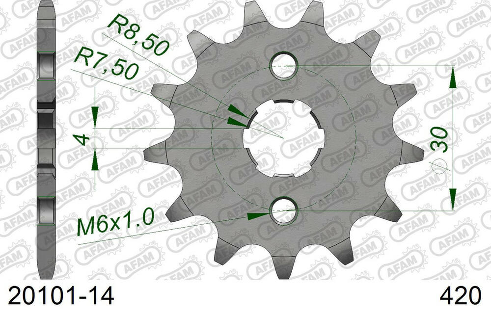 - vorne AFAM 420 Stahl Kettenrad / Ritzel 14 Zähne