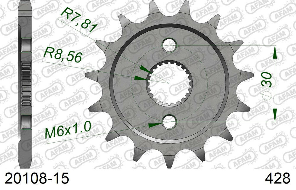 - vorne AFAM 428 Stahl Kettenrad / Ritzel 15 Zähne