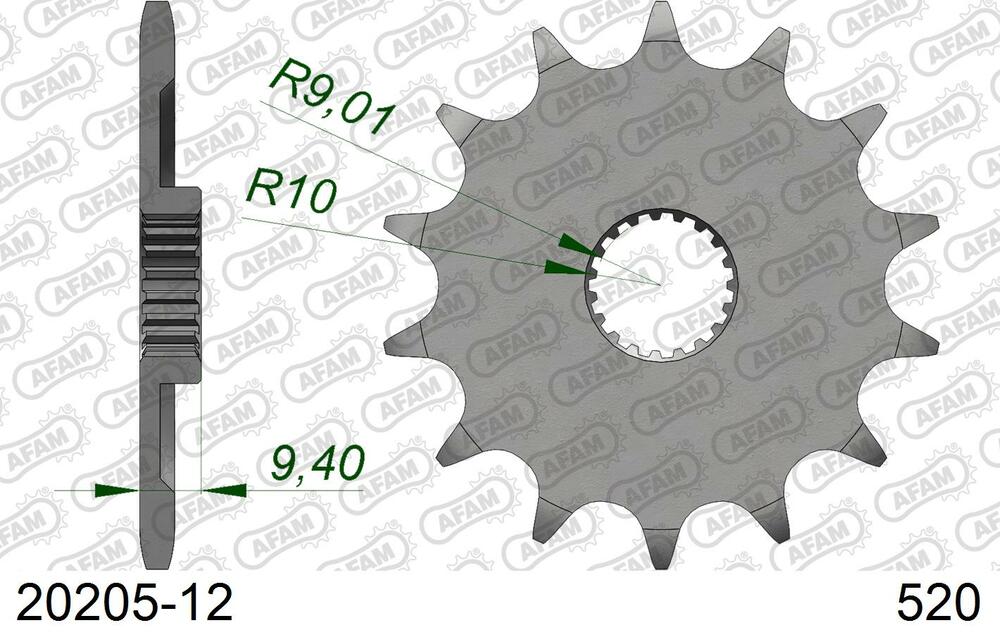 - vorne AFAM 520 Stahl Kettenrad / Ritzel 12 Zähne