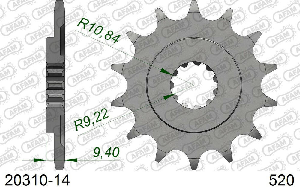 - vorne AFAM 520 Stahl Kettenrad / Ritzel 14 Zähne