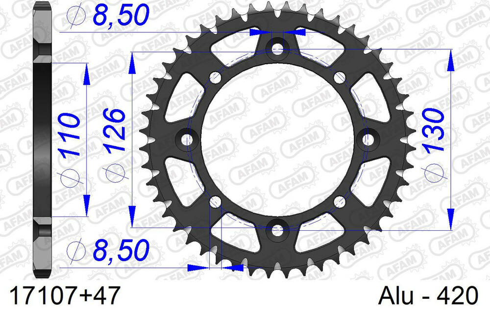 - hinten AFAM 420 Aluminium Kettenrad 47 Zähne
