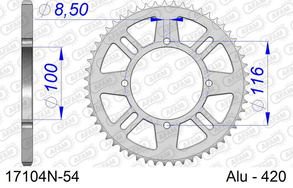 - hinten AFAM 420 Aluminium Kettenrad 54 Zähne