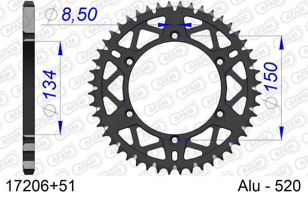 - hinten AFAM 520 Aluminium Kettenrad 51 Zähne
