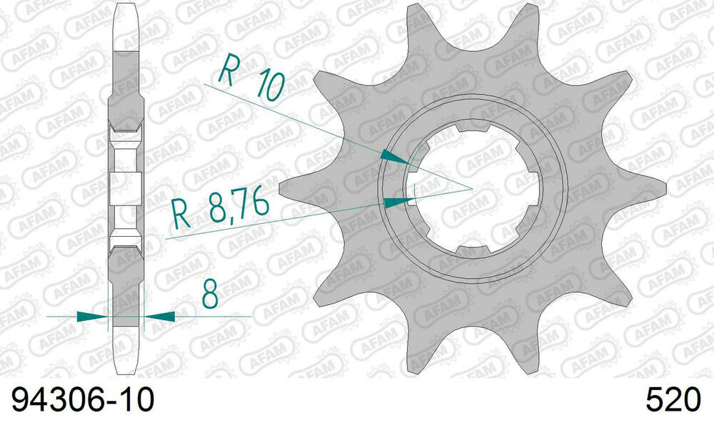 - vorne AFAM 520 Stahl Kettenrad / Ritzel 10 Zähne