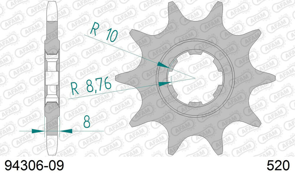 - vorne AFAM 520 Stahl Kettenrad / Ritzel 9 Zähne