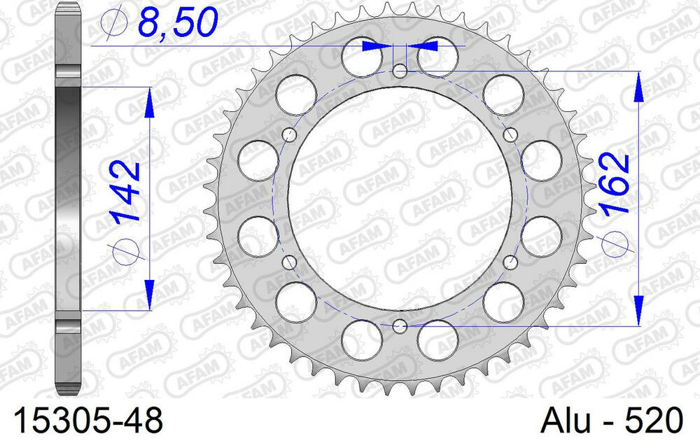 - hinten AFAM 520 Aluminium Kettenrad 48 Zähne