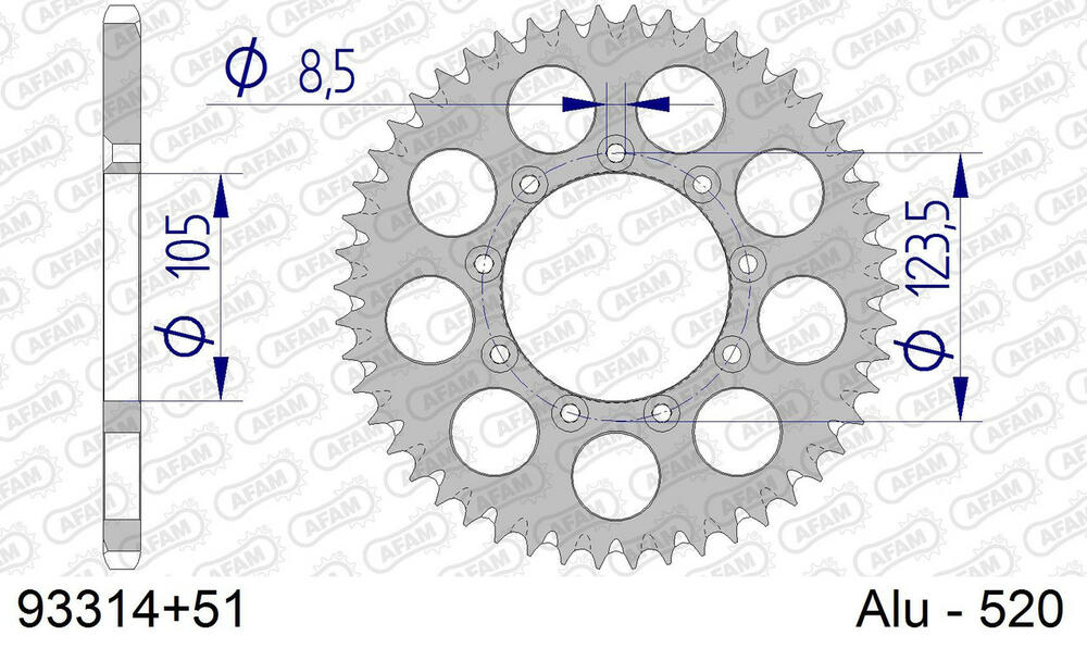 - hinten AFAM 520 Aluminium Kettenrad 51 Zähne