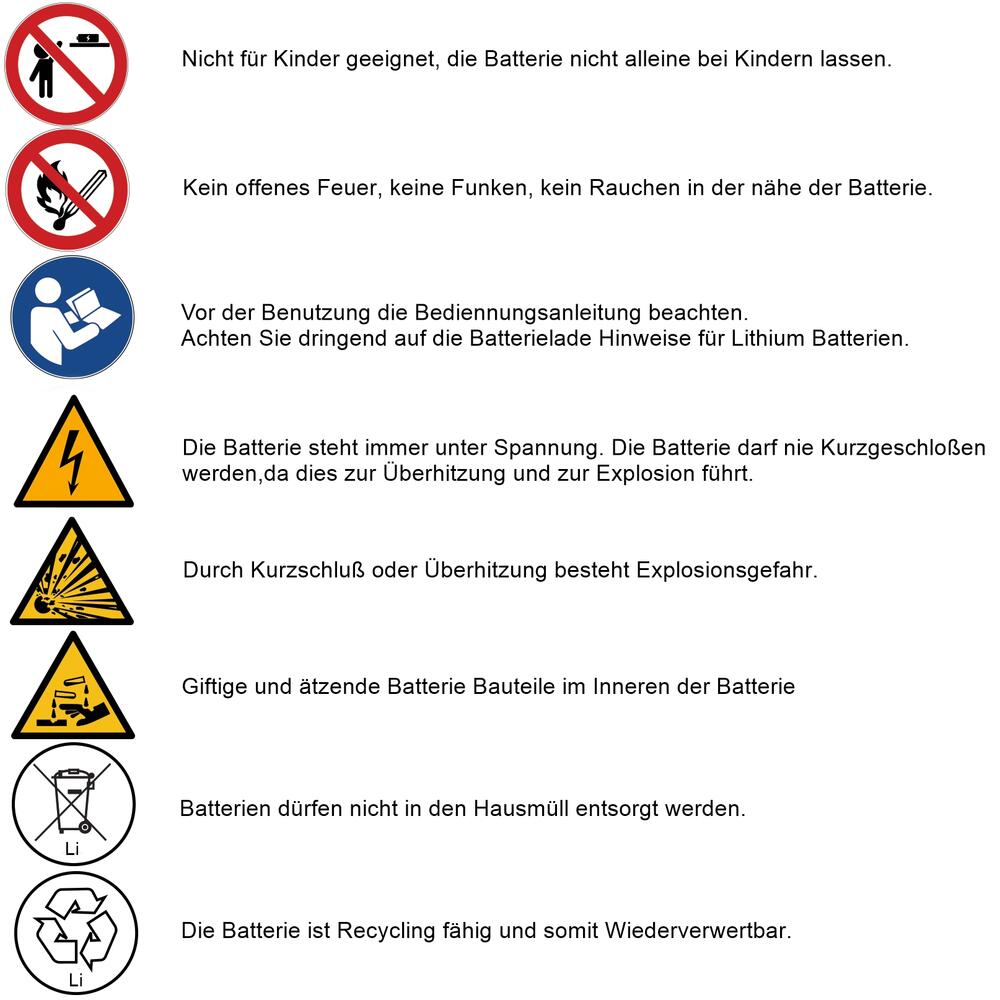 | Batterie Hinweise | ![]() ![]() ![]() ![]() ![]() ![]() ![]() |