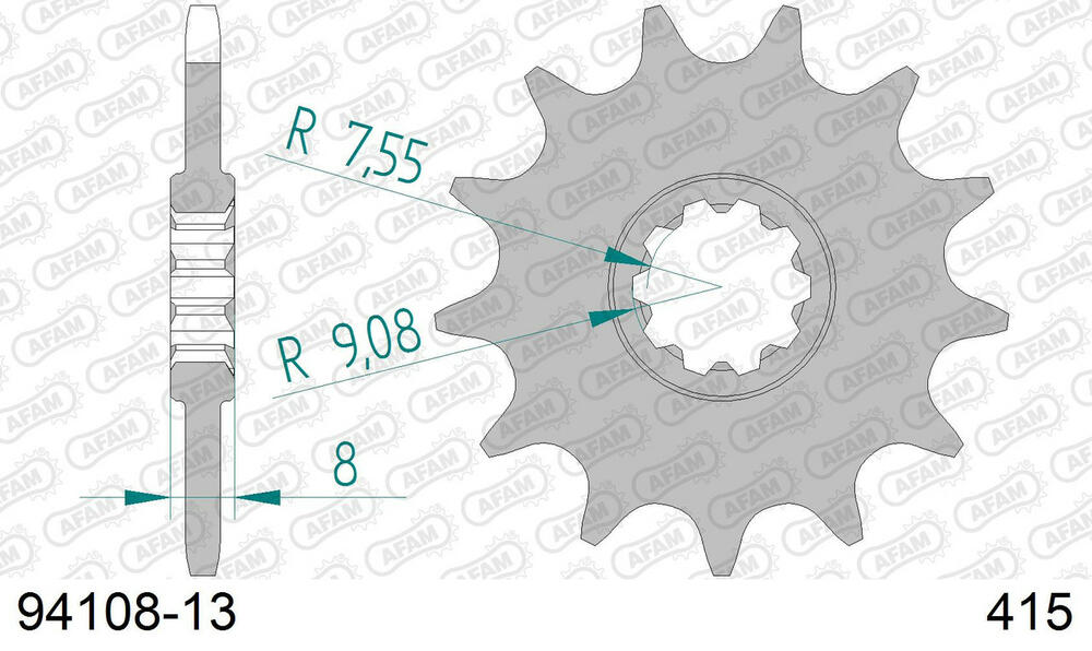 - vorne AFAM 415 Stahl Kettenrad / Ritzel 13 Zähne