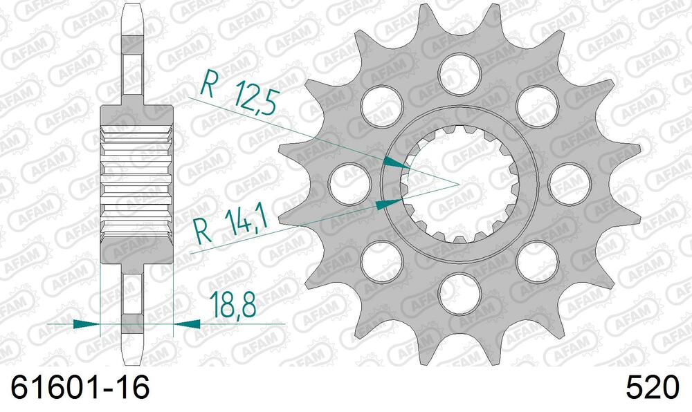 - vorne AFAM 520 Stahl Kettenrad / Ritzel 16 Zähne