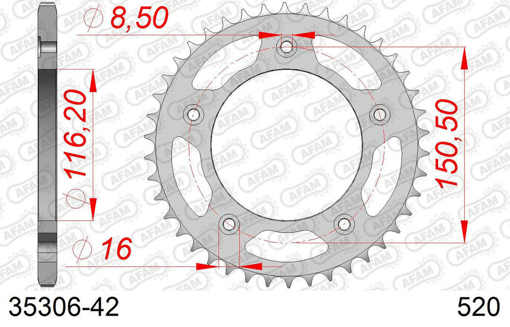- hinten AFAM 520 Stahl Kettenrad 42 Zähne