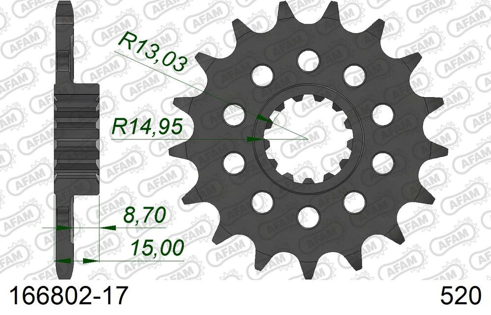 - vorne AFAM 520 Stahl Kettenrad / Ritzel 17 Zähne