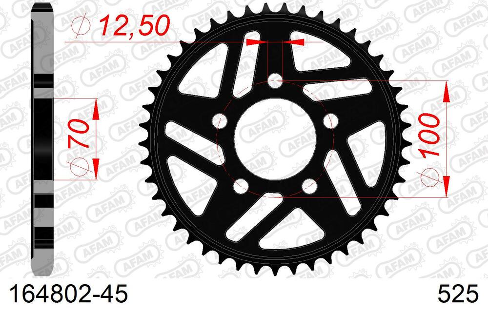 - hinten AFAM 525 Stahl Kettenrad 45 Zähne