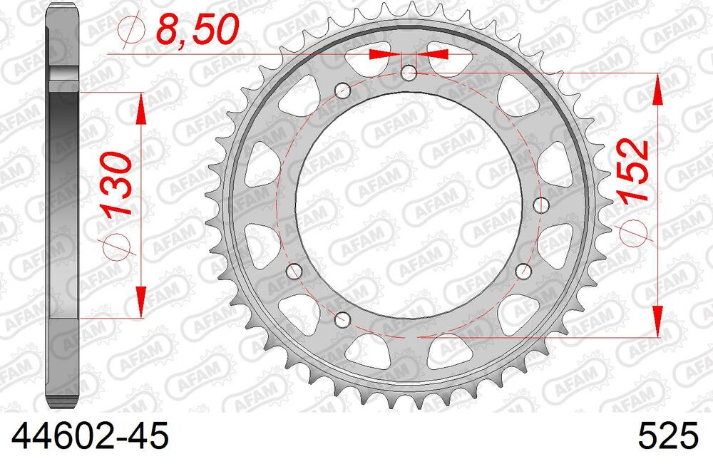 - hinten AFAM 525 Stahl Kettenrad 45 Zähne