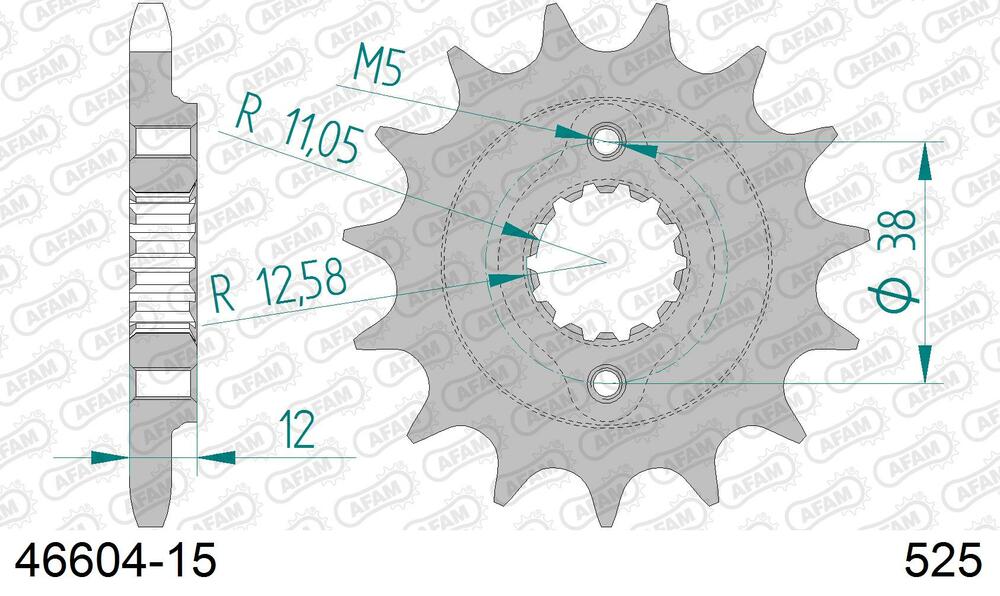 - vorne AFAM 525 Stahl Kettenrad / Ritzel 15 Zähne