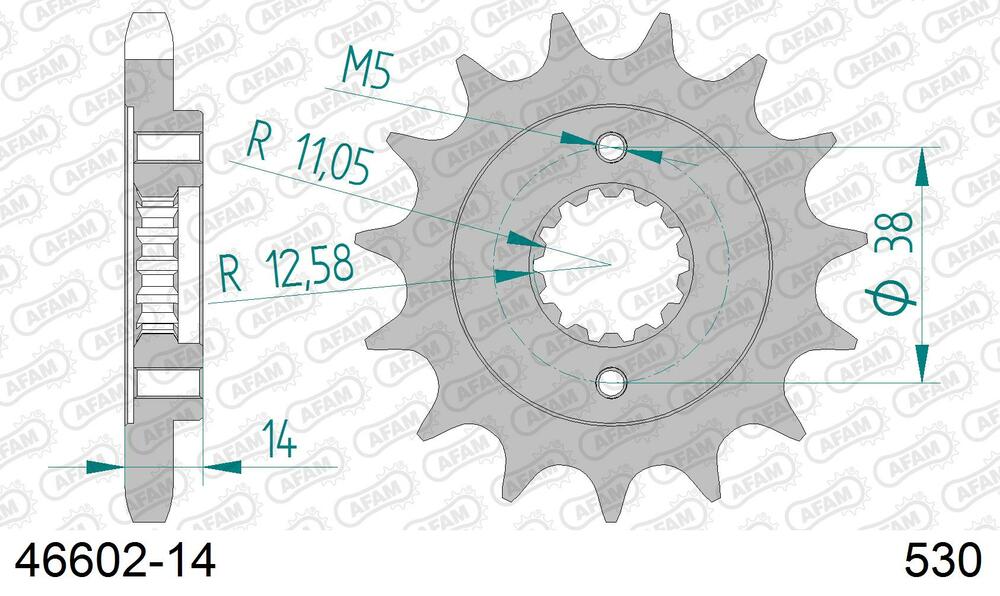 - vorne AFAM 530 Stahl Kettenrad / Ritzel 14 Zähne