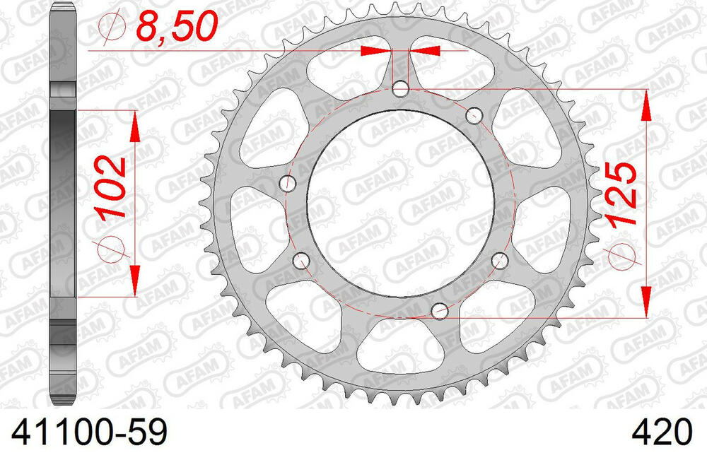 - hinten AFAM 420 Stahl Kettenrad 59 Zähne