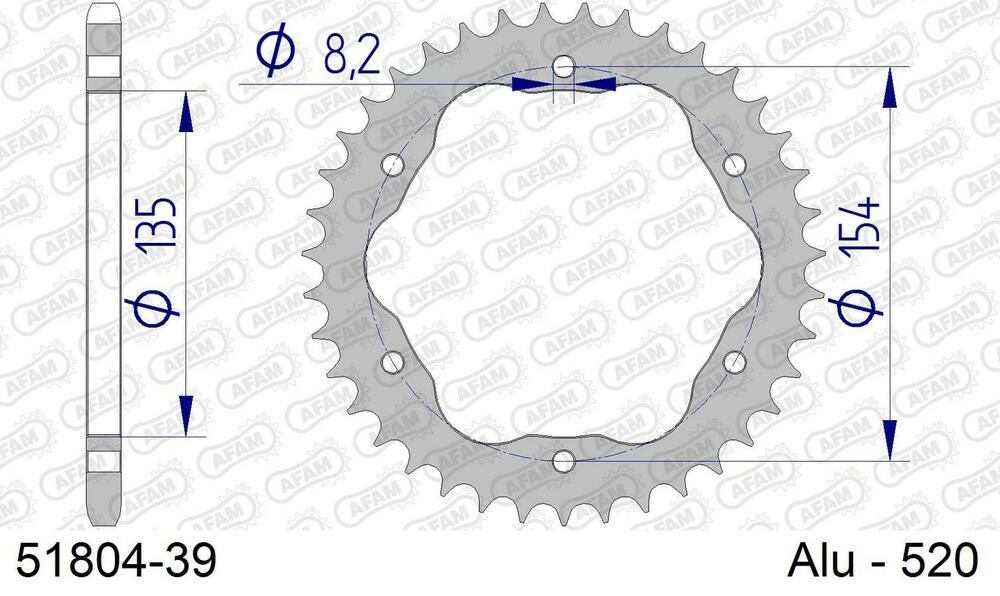 - hinten AFAM 520 Aluminium Kettenrad 39 Zähne