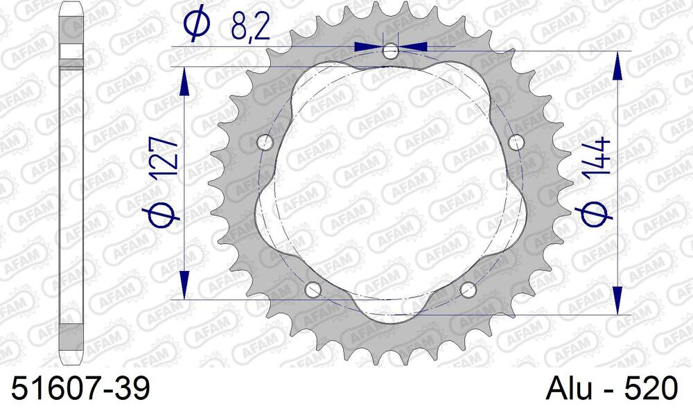 - hinten AFAM 520 Aluminium Kettenrad 39 Zähne