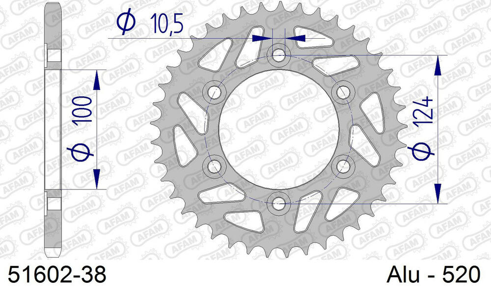 - hinten AFAM 520 Aluminium Kettenrad 38 Zähne