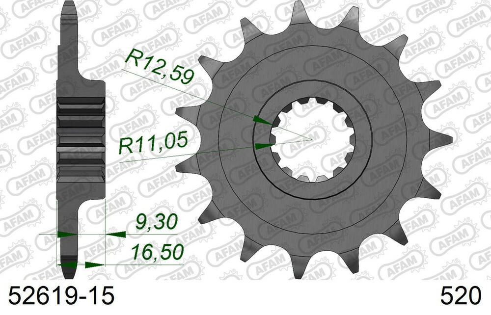 - vorne AFAM 520 Stahl Kettenrad / Ritzel 15 Zähne