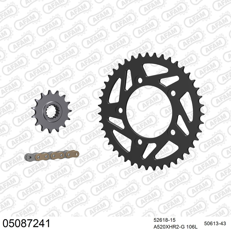 AFAM Kettenkit für Motorräder mit hochwertiger AFAM 520 Antriebskette vom Typ XHR2-G inklusive passendem Nietschloss (Hohlbolzen).